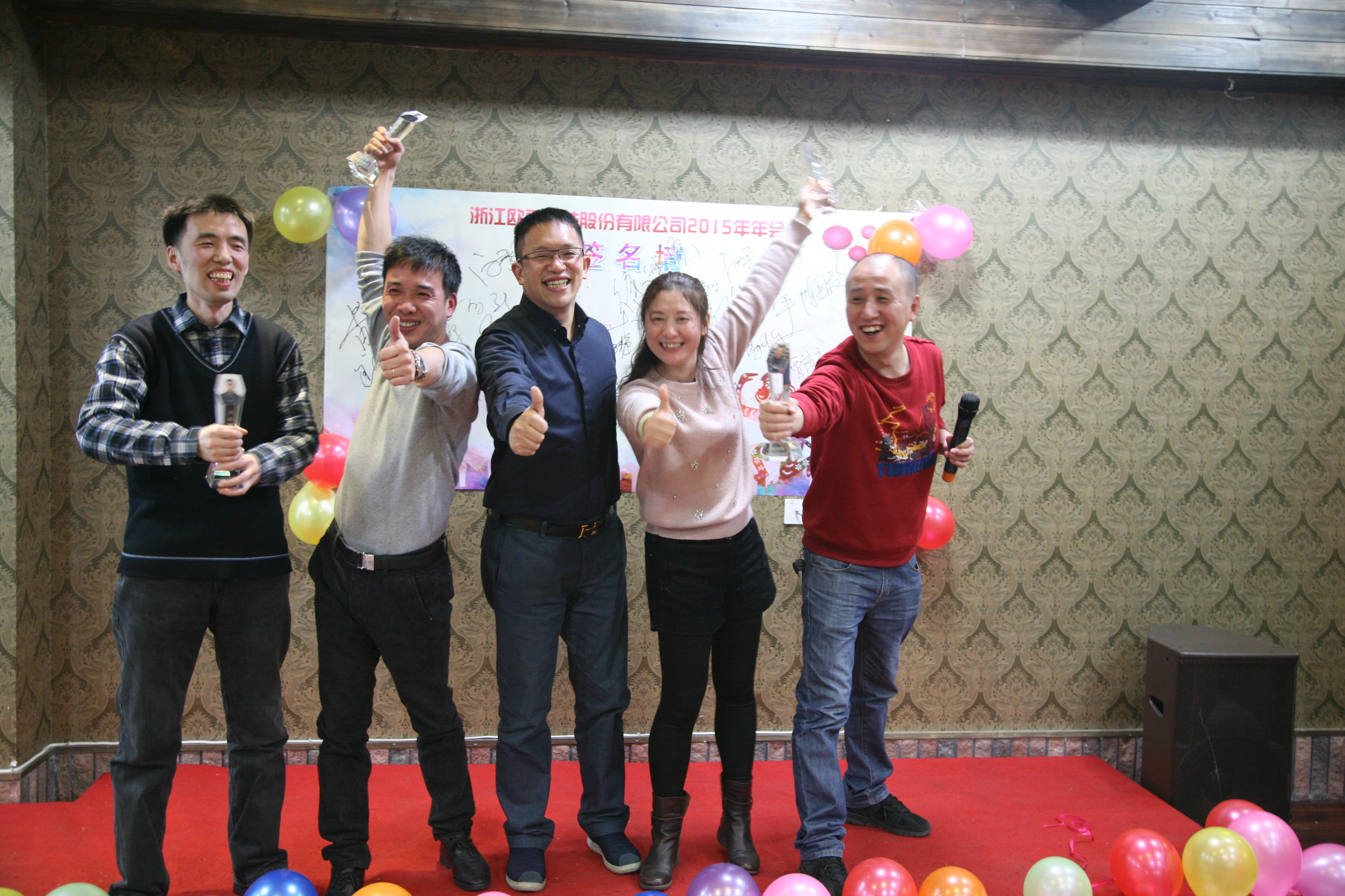 时光荏苒,岁月更迭,恰是阳光明媚时!2015年12月18-19日,浙江欧歌科技股份有限公司全体员工在建德市新安江森林温泉度假酒店举办了2015年年会,欧歌科技董事长韩馨梓女士、总裁陈乃全先生等领导及公司全体员工共同参与了此次年会,全体员工共同度过了一个难忘而欢乐的年会。